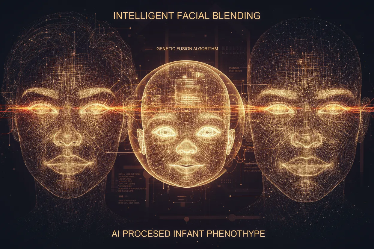 VidMage's AI analyzes key facial traits from both parent photos, including face shape, skin tone, eye structure, and nose, then blends them into a believable portrait that looks like it could be a real photo.