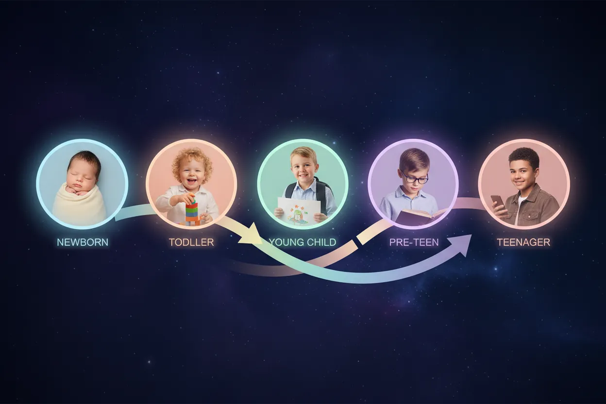 Most tools give you one generic baby photo. VidMage gives you a realistic prediction across five age stages, with full privacy.