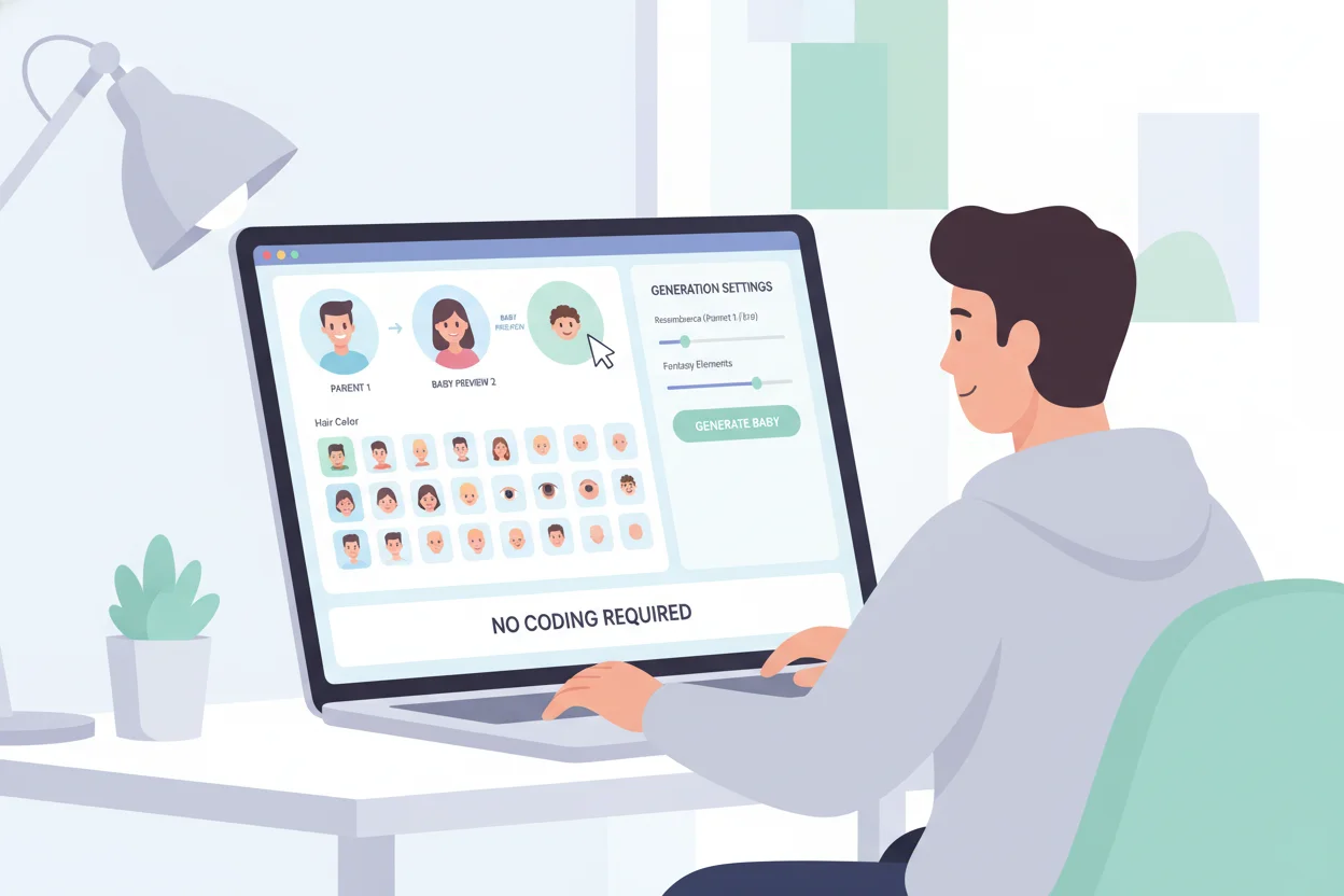 You do not need to learn a complex interface or spend time adjusting settings. Upload both photos, set your preferences, click Generate, and your baby portrait is ready in seconds.