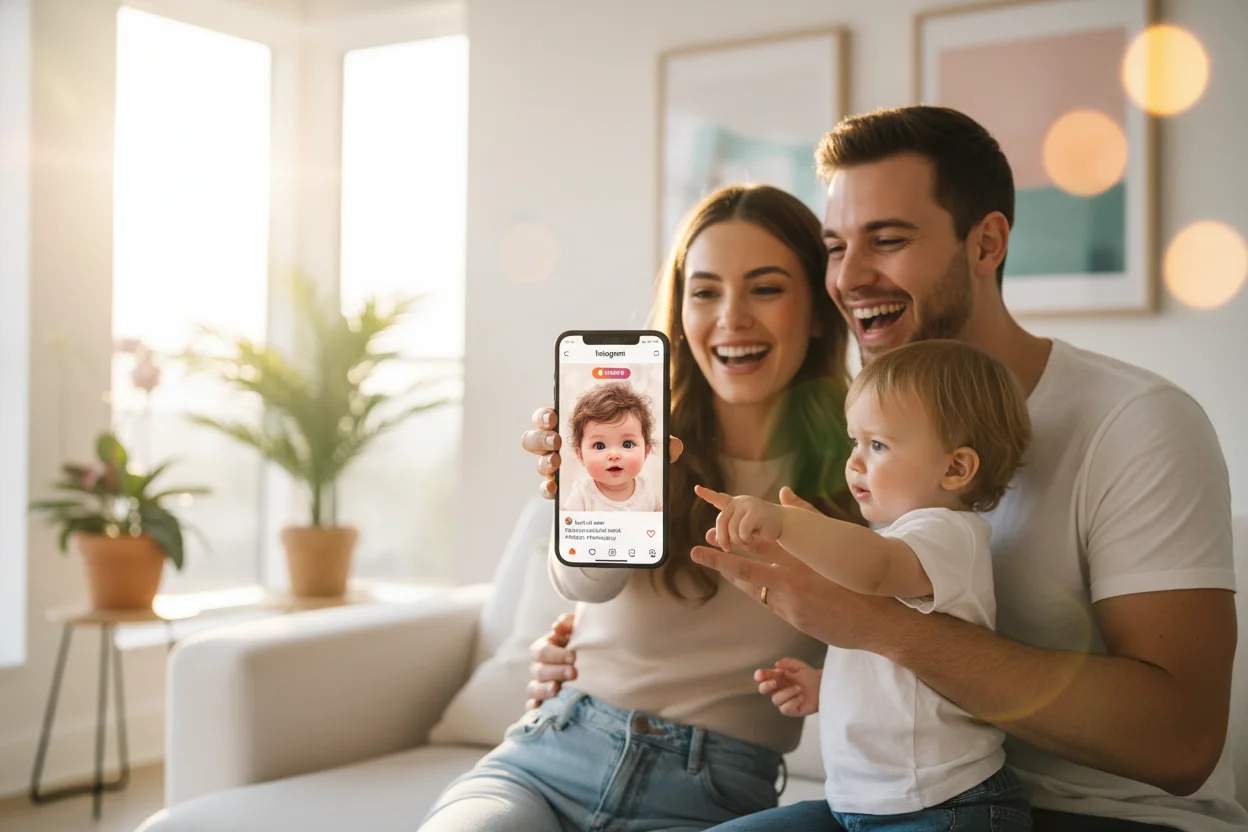 Once your baby portrait is generated, you can download it and share it anywhere. The format works well for Instagram, TikTok, Facebook, or a gender reveal announcement. Couples are using AI baby photos to post engagement milestones, baby shower content, and viral "future family" videos. The output size and quality are optimized for social media sharing, so the image looks sharp whether you post it as a static photo or include it in a short-form video.