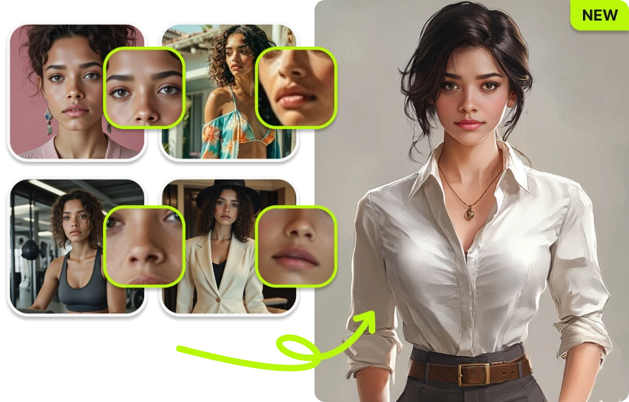 Let VidMage's AI do the work! It will quickly blend the facial features or full face from the second photo into the first one. In just seconds, your new face or feature swap will be ready to download.