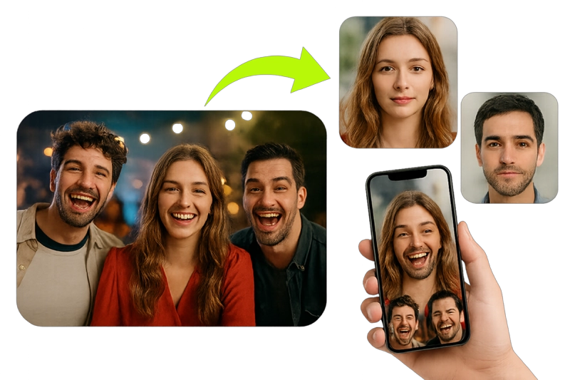 Swap multiple faces in one photo effortlessly.