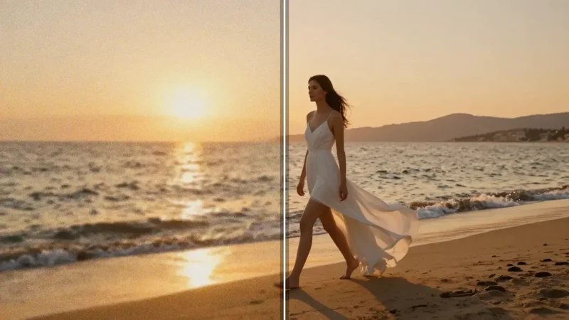 Upscale and enhance video quality with AI - remove blur, noise, and restore details.